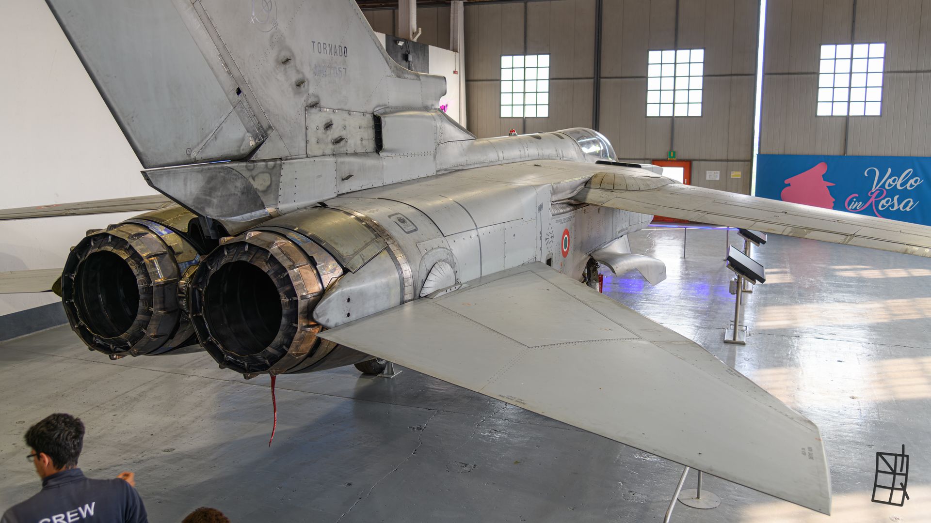Esporre un velivolo come il Tornado non è stato semplice. Le sue dimensioni e la complessità strutturale hanno richiesto soluzioni tecniche su misura. Il team di Volandia, in collaborazione con l’Aeronautica Militare, ha studiato ogni aspetto: dal posizionamento all’interno del padiglione Ala Fissa, fino alla cura dei materiali e alla protezione dagli agenti esterni. Il risultato è un allestimento immersivo e didattico, pensato per valorizzare il velivolo e raccontare al pubblico la sua storia operativa attraverso pannelli, luci e dettagli tecnici.