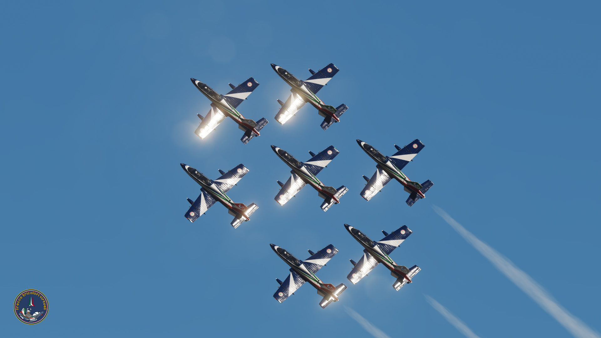 Le Frecce Tricolori Virtuali, nate nel 2003, nascono con l’obiettivo di replicare le emozioni e le incredibili capacità della Pattuglia Acrobatica Nazionale “Frecce Tricolori”. La squadra promuove una cultura aeronautica sana e virtuosa, ispirata ai valori e all’etica espressi dall’Aeronautica Militare Italiana e dal 313° Gruppo Addestramento Acrobatico. Nel corso degli anni, le FTV si sono affermate come una delle pattuglie virtuali più rappresentative d’Europa, unendo tecnologia, disciplina e spirito di squadra per offrire spettacoli di altissimo livello.
